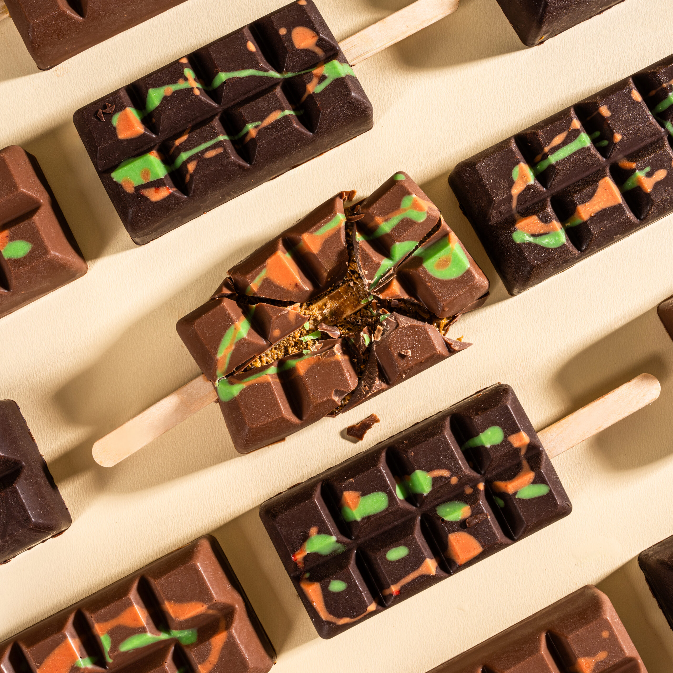 Laissez-vous séduire par notre Chocolat Dubaï au Lait, où l’onctuosité du chocolat au lait rencontre un cœur de pistache et de kunafe. Cette fusion harmonieuse crée un voyage sensoriel captivant à travers les saveurs riches du Moyen-Orient.