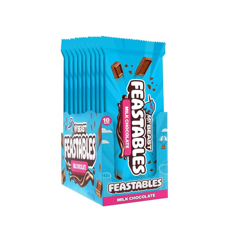 Mister Beast feastables bar milk chocolate est une célébration de la simplicité élégante, mariant la richesse crémeuse du chocolat au lait de la plus haute qualité à une texture parfaitement lisse qui fond délicieusement en bouche.